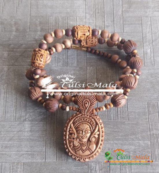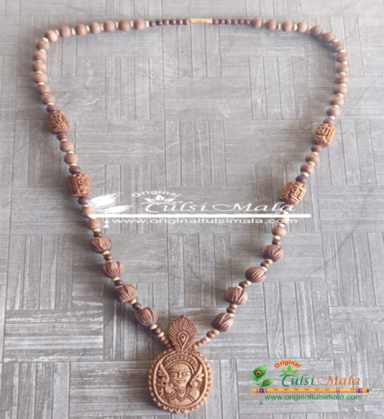Wonderful Carving Krishna Face Tulsi Locket Mala